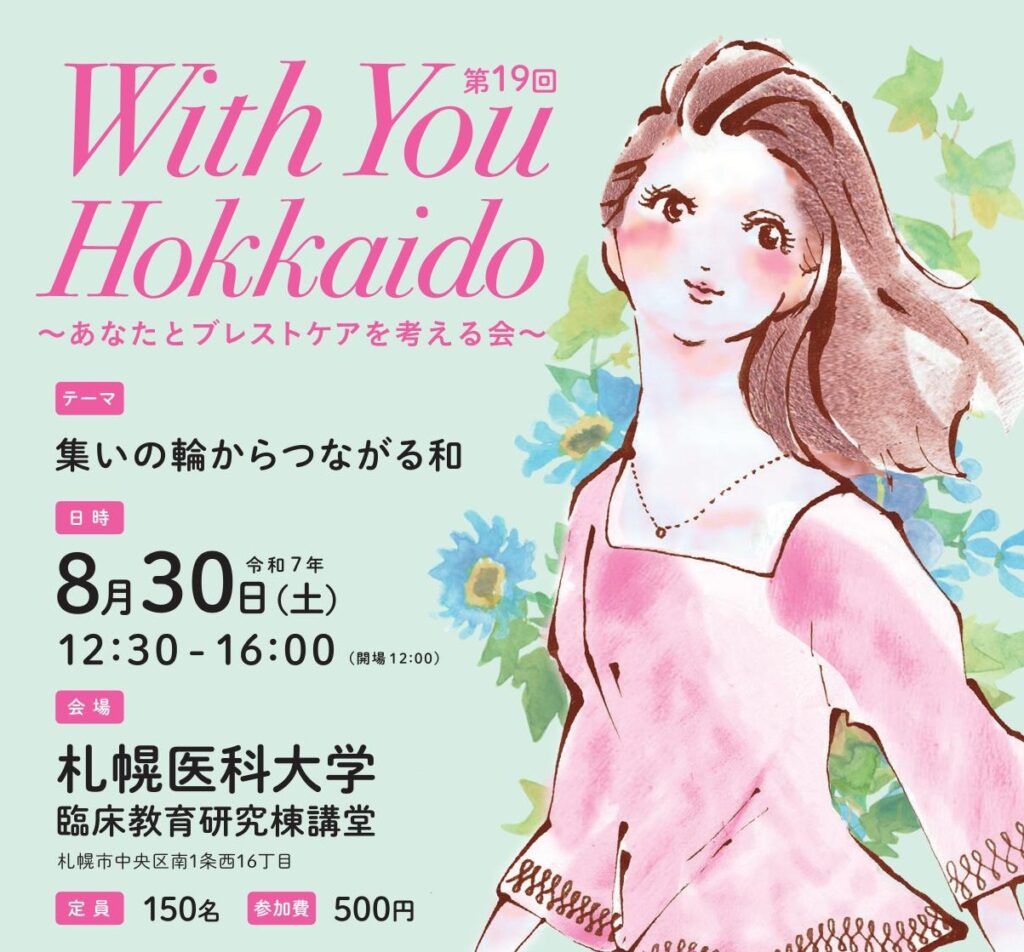 「With You Hokkaido」は乳がんを経験したがんサバイバーの皆さんと私達メディカルスタッフのコミュニケーションの場で、コロナ禍後に活動を再開し2025年で19回⽬を迎えます。情報共有や、グループワークを通じて、医師やメディカルスタッフの皆さん、がんサバイバーの皆さんとわけ隔てなく和気あいあいと時間をともにします。ふだんなかなか⾔えないことを聞いたり話したり、⽇常の悩みに解決法がでてくることもあります。そして、意気投合して友⼈ができて、その後も交流が続く⽅もいらっしゃいます。新規ご参加も歓迎いたします。