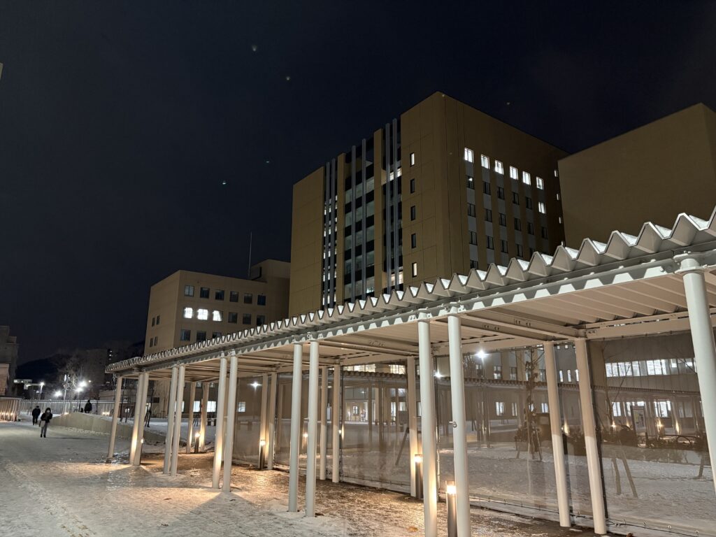 広⼤な北海道に位置する当院では、地域に在住の皆さまへ乳がん診療をいかに届けるかが命題となっています。冬期は通院が困難となることもあります。このような不便さもありますが、私たちは、様々な地域の医師や医療スタッフと連携して、患者さんがどこにいても乳がんの診療を受けられるように活動しています。具体的には、地域医療の向上をめざし⼤学の医師や医療スタッフが地域に出向いて診療を提供、情報共有を⾏っています。逆に地域の医師や医療スタッフが当院へ外来⾒学や⼿術参加を⾏う機会も設けています。
